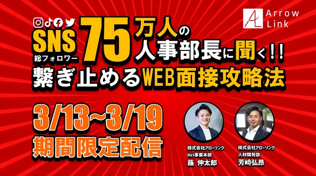 「SNS総フォロワー75万人の人事部長に聞く!繋ぎ止めるWEB面接攻略法~その面接が辞退理由です~」と題し、現役Tiktoker人事部長と現役採用コンサルタントがWEB面接の攻略法をお伝えします。