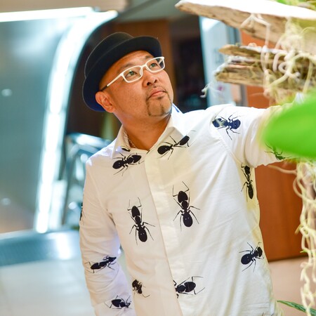 UWS ENTERTAINMENT代表として、繊細かつ奇抜なアイデアで、水槽を<水の惑星> と称しアクアリウムの新しいスタイルを切り開いてきた、日本を代表するアクアシーンの異端児 。テラリウムやビオトープなどさまざまなジャンルに定評があり、陶芸や音楽 といったジャンルを超えたアーティストたちとのコラボレーシ ョンイベントを開催するなど、多くの人の支持を集めている。そして見る人の心を魅了するその作品は、時を忘れさせる程優雅で美しい。