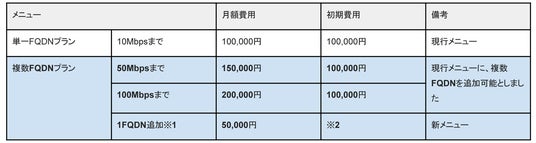 ●新料金プラン「複数FQDNプラン」について