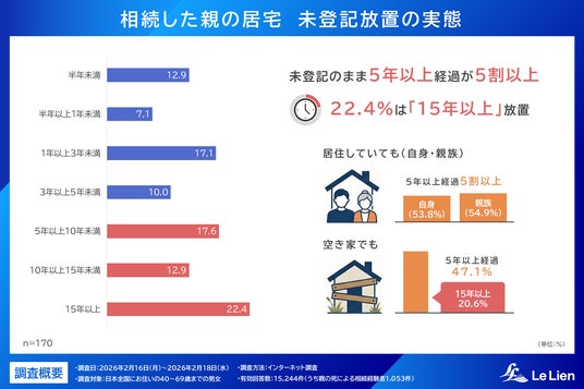 相続した親の居宅の16.1%が未登記、その半数以上が「5年以上」放置