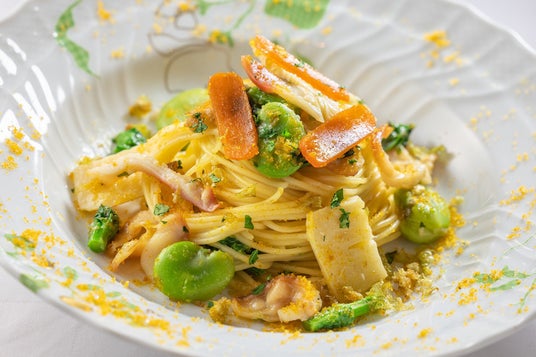 ・【片岡護シェフ】春野菜と北寄貝のからすみのスパゲッティー