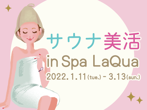 スパ ラクーアでは、3月31日まで「サウナ美活 in Spa LaQua」と題して、サウナにちなんだイベントを開催中です。期間中は、サウナが苦手な方におすすめのサウナと同じような効果が期待できる限定エステメニューの提供や、期間限定の香りで楽しめるロウリュサービス、毎週火曜日に血行促進ヨガなどを実施します。「サウナを愛でたい」とのコラボレーションイベントと組み合わせることで、美活とリフレッシュを一緒にお楽しみいただけます。