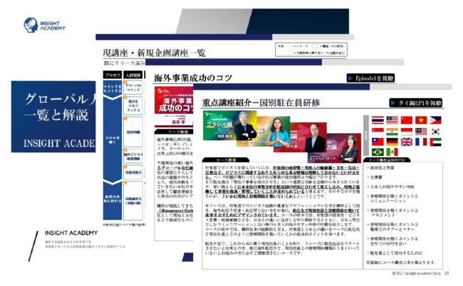 嘉章)は、グローバル人材育成特化型eラーニングサービス「INSIGHT ACADEMY」の講座一覧をWebサイトで公開したことをお知らせします。