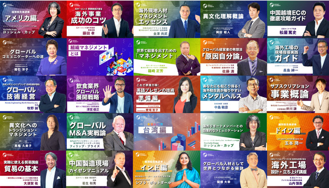 「講座一覧」では、グローバル人材育成要件別に細分化したシリーズの概要、各講座の構成、どのようなことが学習できるか、登壇講師の経歴等をご確認頂けます。
