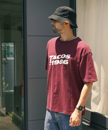 タコスショップ「TACOS 1986」とのコラボアイテム。フロントに施されたロゴデザインが、コーデにアクセントを加えてくれます。
