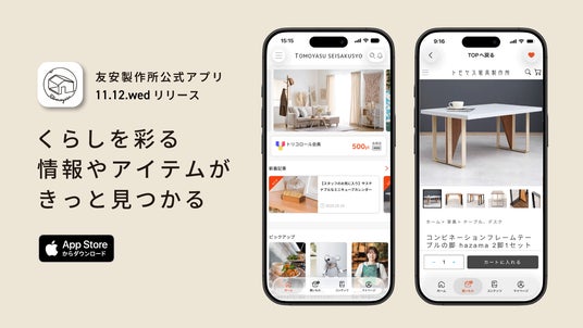 インテリアやDIYアイテムを販売する株式会社友安製作所(本社:大阪府八尾市、代表取締役社長:友安 啓則)は、2025年11月12日(水)、「友安製作所公式アプリ(友安製作所アプリ)」のiOS版をリリースいたします。本アプリは、当社のオンラインストアや直営カフェなどで利用できる共通ポイント機能をはじめ、くらしを豊かに彩るコンテンツを提供します。