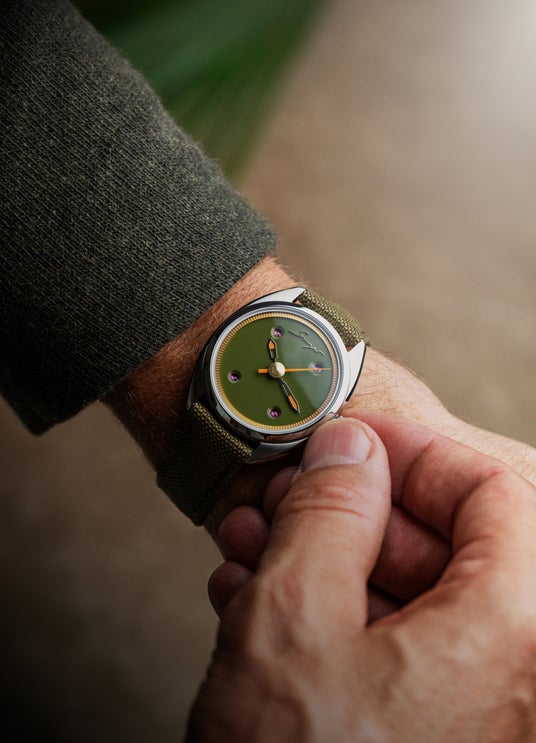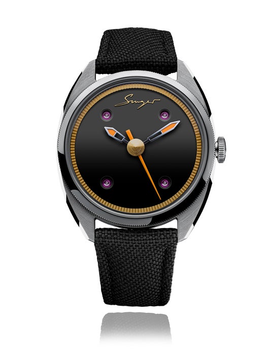 一目で感じるミニマリズム。洗練されたデザインと革新的なパフォーマンスを備えたカバジェロの39mmケースは、ステンレス・スティールで仕立てられ、Singerがインスピレーションを受けた1960年代・1970年代、特にオリジナルのTrack1プロトタイプを彷彿とさせます。カバジェロは、バランスの美学を極めた腕時計。形状が機能を損なうことなく、細部のこだわりが上質さを物語ります。