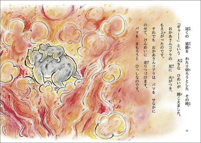 ある日、今まで見たこともない大きな大きな火事がおこりました。パマを守ろうとお母さんコアラも必死に逃げましたが、、、。
