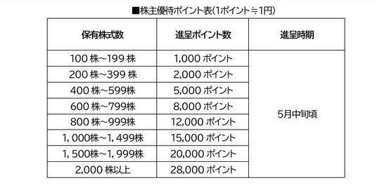 お手持ちの株数に応じて、株主優待ポイントを贈呈いたします。