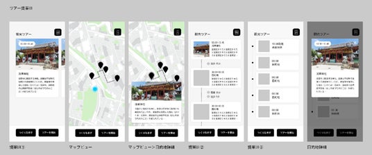 インプットに応じてその場でおすすめのSPOTと関連する情報、周遊する順番に関する提案が出力されます。それらをマップビューで確認しながら、どのルートで周遊するかを選択します。