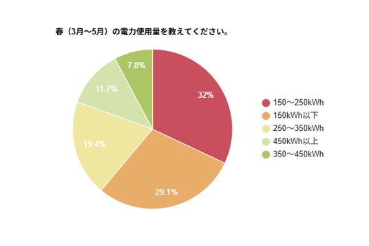 - 春の電力使用量は約6割の方が「250kWh以下」