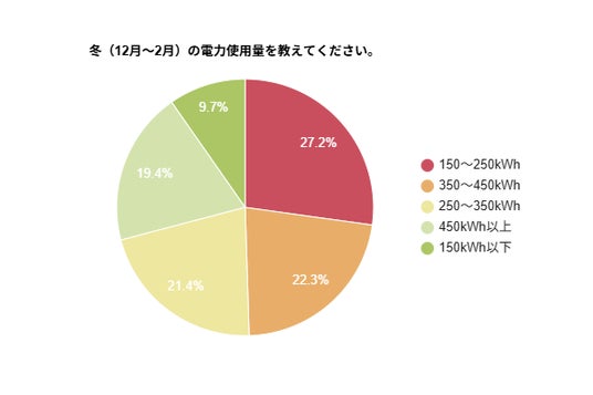 - 冬の電力使用量で最も多かったのは「150~250kWh」で27.2%
