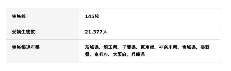 2022年の開始以来、2025年度までに全国145校、21,377人の生徒が受講しており、毎年継続して導入する学校も増えています。