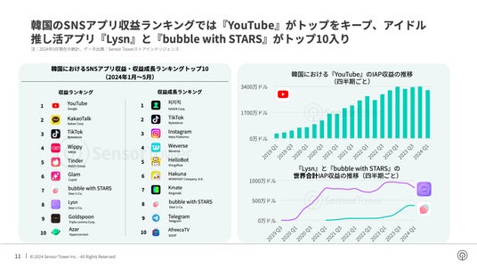 『YouTube』は韓国において最も収益が多いSNSアプリの座をキープ