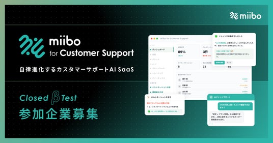 miiboは本日より、「miibo for カスタマーサポート」のクローズドβテスト参加企業を5社限定で募集します。
