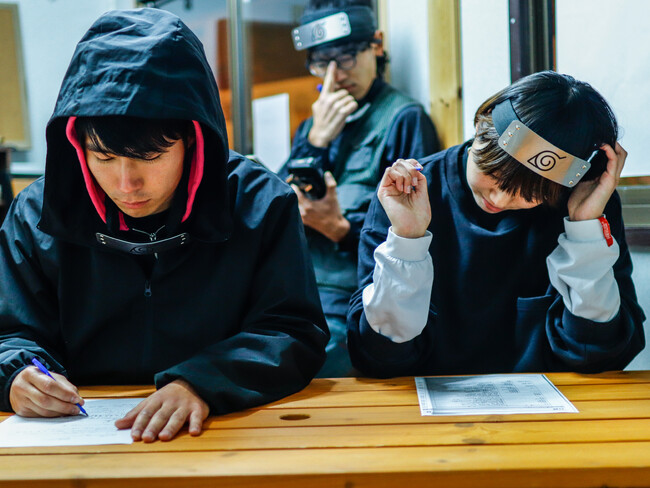 本試験では、カンニングでもしないと解けない筆記試験やエリア内に散らばった「天」「地」の2つの巻物をそろえる巻物捜索など、原作でナルトたちが苦しみながらも達成した、試験の数々を忍里オリジナル問題として出題。全ての試験をクリアした方には、中忍の証となる合格証書をプレゼント!残念ながら試験中に脱落してしまった方にも、忍里限定のオリジナルシールをプレゼントいたします。試験は全部で3つ!智恵や体力はもちろん、忍らしいセンスと発想、そして忍耐力で不合格者続出の超難関試験を突破しよう!ファンたちの “ナルト愛”を試す、作品への愛が溢れたイベントに、仲間と一緒に挑戦しよう!