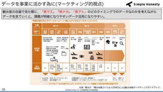 観光のフェーズごとに関連する事業者と有効なデータの分布