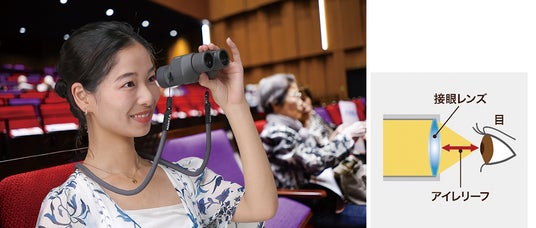 従来の超広角双眼鏡(※2)は、目と接眼レンズの距離をできる限り短くする必要があり、特に眼鏡をかけた方には大変覗きにくい設計となっていました。