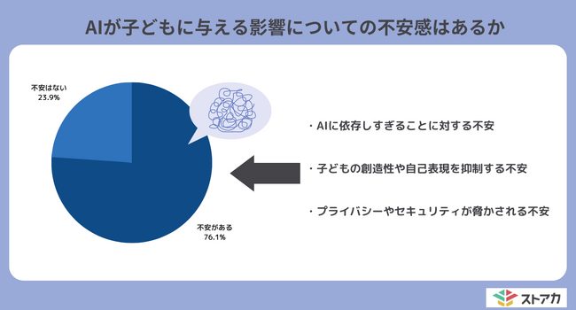 「AIが子どもに与える影響についての不安感はあるか」と尋ねた結果、「ある」と答えた人が全体の76%にのぼりました。