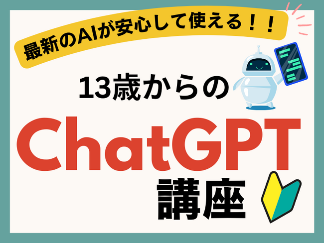 この講座では13歳以上の学生を対象に「Chat GPTの使い方&付き合い方」を学ぶことができます。注意点や活用方法を正しく理解し、ChatGPTを効果的に学習に活用する方法をレクチャーします。また、ファクトチェックの方法など、正しい情報の取得方法についても学んでいきます。