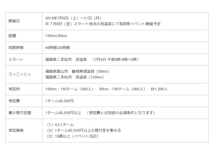 また、昨年は募集開始早々に参加枠が埋まってしまいキャンセル待ちの状態となりましたが、今年は参加枠を昨年の150チーム(600人)から拡大し、50kmと100kmで各150チーム、合計300チーム(1,200人)を募集する予定です。
