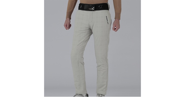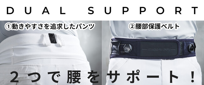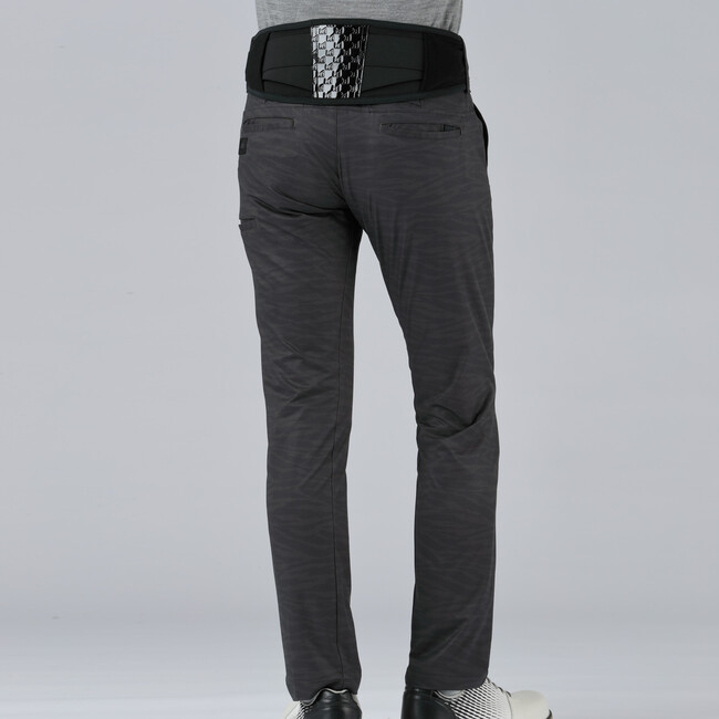 サポート機能と動きやすさを兼ね備えた、腰部保護ベルト一体型ゴルフパンツ