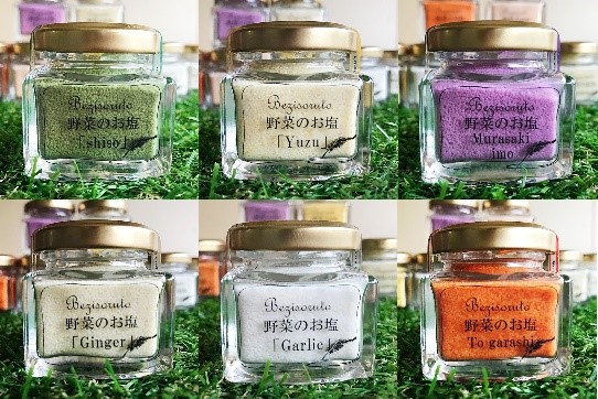 ベジソルトは、規格外野菜を使用し野菜を丸ごと使用したお塩です。色鮮やかですが、着色料、香料などは使用しておりません。風味にもこだわった栄養満点のお塩です。※天候により商品が変更になる場合がございます。