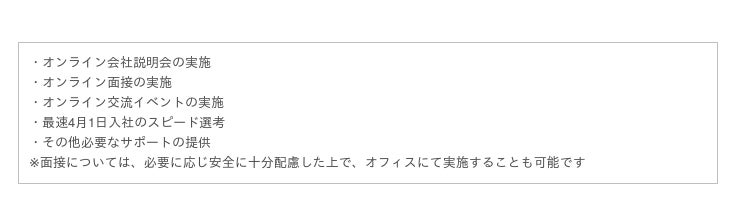 オンライン説明会&オンライン面接で20新卒、4月1日入社、まだ間に合う!