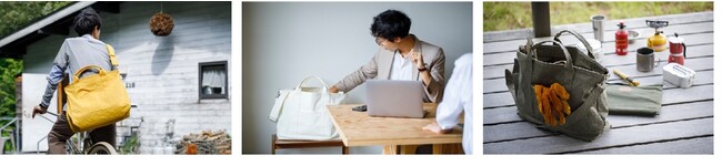 軽くて気軽に持て、普段着にもぴったりなのに、質感のある見た目や自立する形状はビジネスシーンでも大活躍。さらに、強度があり、汚れに強くアウトドアシーンでもご使用いただけます。