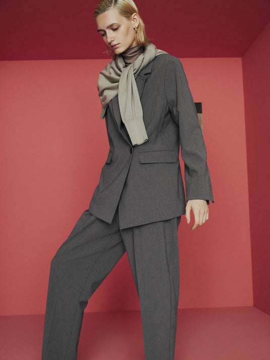 マットストレッチセミダブルジャケット¥25,300 マットストレッチタックバレルパンツ¥16,500(すべて税込)