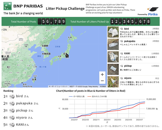 科学技術の力であらゆる環境問題を克服することを目指す株式会社ピリカ(東京都渋谷区、代表取締役:小嶌不二夫 以下ピリカ)は、BNPパリバ・グループ(東京都千代田区 以下BNPパリバ)とCSRパートナーとして連携し、見える化ページ「Litter Pickup Challenge」の拡大運用を通じてBNPパリバのボランティア活動を支援します。