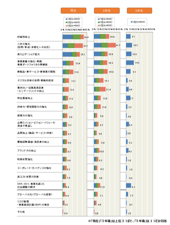 【図1】 「現在」「3年後」「5年後」の経営課題