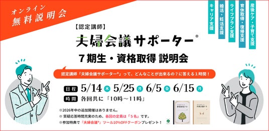 ※認定講師「夫婦会議サポーター」へのエントリーに際して、資格取得説明会への参加は必須ではありません。