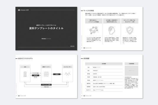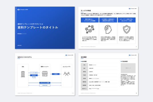 営業資料やサービス紹介資料としてすぐに活用できるよう、構成・デザインの両面でビジネス利用に最適化。資料作成に不慣れな方でも直感的に使える内容となっています。