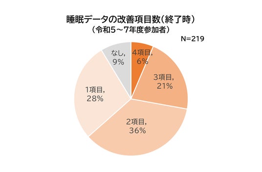その結果、4項目のうち1つ以上に改善が見られた参加者は91%で、ほとんどの参加者で客観的な睡眠データの改善が確認されました。