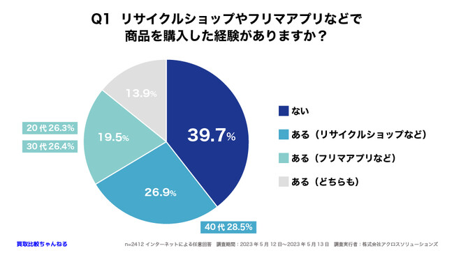 株式会社アクロスソリューションズと株式会社浜屋が共同運営している買取比較ちゃんねる(URL:https://www.hamaya-corp.co.jp/media )は、15歳~60歳以上の男女2412人を対象に「中古品の購入に関する意識調査」を実施しました。