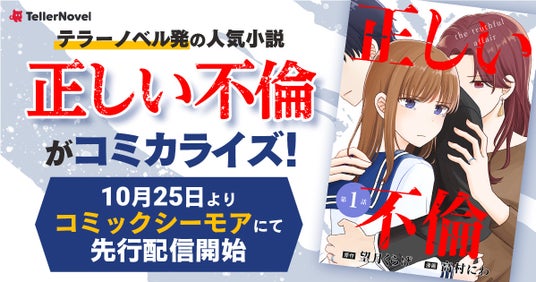 株式会社テラーノベル(本社:東京都港区、代表取締役社長:蜂谷宣人)はこの度、累計DL数760万(※)の小説共有プラットフォーム「テラーノベル( https://teller.jp/ )」発の人気作品『正しい不倫』がコミカライズされ、10月25日よりコミックシーモアにて先行配信を開始することをお知らせいたします。
