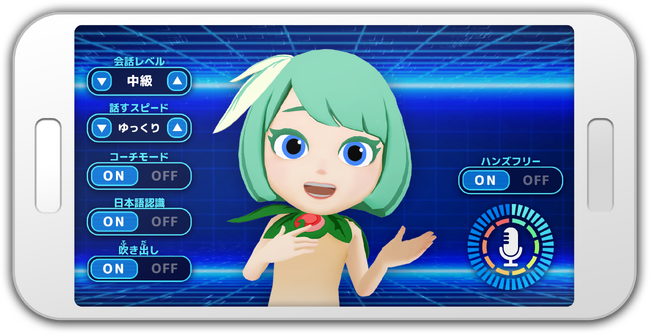 アプリを使い、AIキャラクターといつでも英会話ができます。会話難易度の変更、会話速度の調整がリアルタイムに可能。さらに字幕、翻訳機能も付いています。会話履歴などを参照して学習データの蓄積や、苦手、得意部分も把握できるようになります。