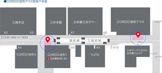 ※いずれも東京都中央区日本橋室町(東京メトロ三越前駅直結)