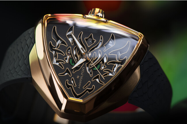 1957年の発表以来、ハミルトンの「ベンチュラ」はデザインとウォッチメイキングにおいて、革新とフューチャリズムの持つパワーを体現し続けてきました。辰年となる2024年、伝説の生物として尊ばれるドラゴンの威信と力強さを称え、型破りで大胆なスケルトンのドラゴンの文字盤デザインが光る新モデルとともに、「ベンチュラ」は新たな歴史を刻みます。