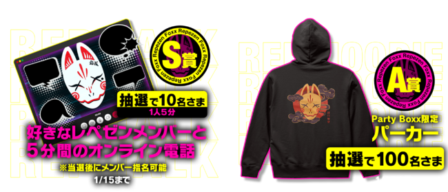『Party Boxx』リリースを記念して、「Repezen Foxx」に関連したプレゼントがもらえるキャンペーンを開催中です。