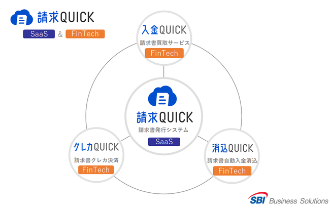 【SaaS & FinTechで構成する「請求QUICK」の概要図】