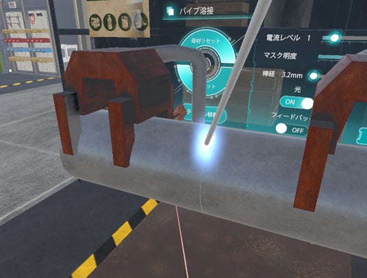 MRバージョンでは、実際の作業環境や治具を視認しながら、仮想溶接を行うことが可能です。