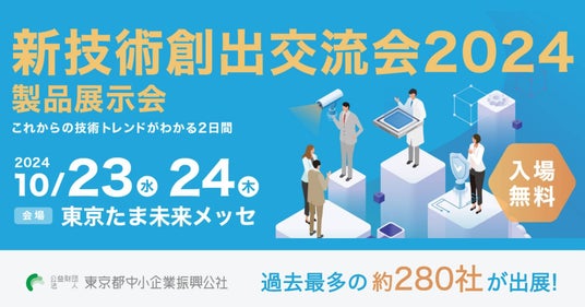 公益財団法人 東京都中小企業振興公社(本社:東京都千代田区、理事長:中西 充)は、企業間の技術連携等によるオープンイノベーション創出を目的として、新技術創出交流会2024「製品展示会」を10月23日(水)・24日(木)に開催します。今年度は過去最多の約280社が出展予定です。現在、来場者の事前登録(無料)を受付中です。