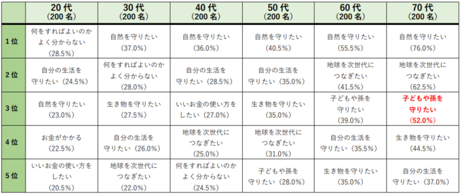 い。70代は「子どもや孫を守りたい」という意識も高くなる。