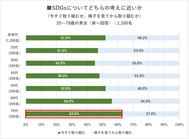 SDGsの取り組み意向は5割超え、60代は6割以上、70代は8割弱と高く、