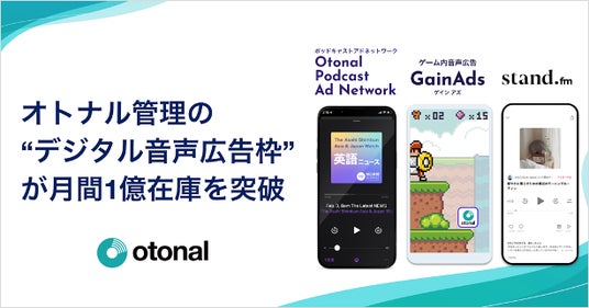 株式会社オトナル(本社:東京都中央区/代表取締役 八木太亮、以下、オトナル)で管理するデジタル音声広告枠が、月間1億在庫を突破しました。