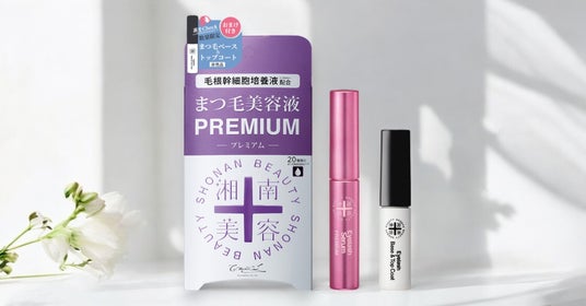 今回は、さらにメイク映えする目元になれるよう、おまけ商品として「湘南美容まつ毛ベース&トップコート(ミニサイズ)」を付けて、数量限定で販売します。