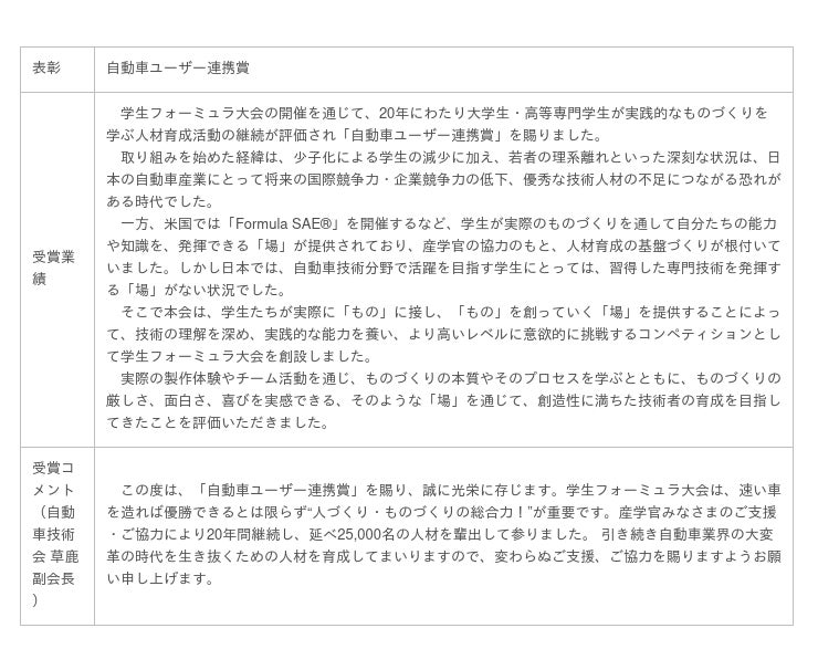 この度、本会は、「自動車ユーザー連携賞」を賜る事が出来ました。