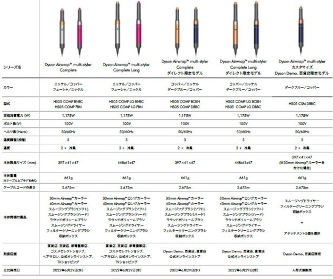 ■Dyson Airwrap™マルチスタイラーの製品詳細情報については、www.dyson.co.jp、製品カタログをご覧ください。